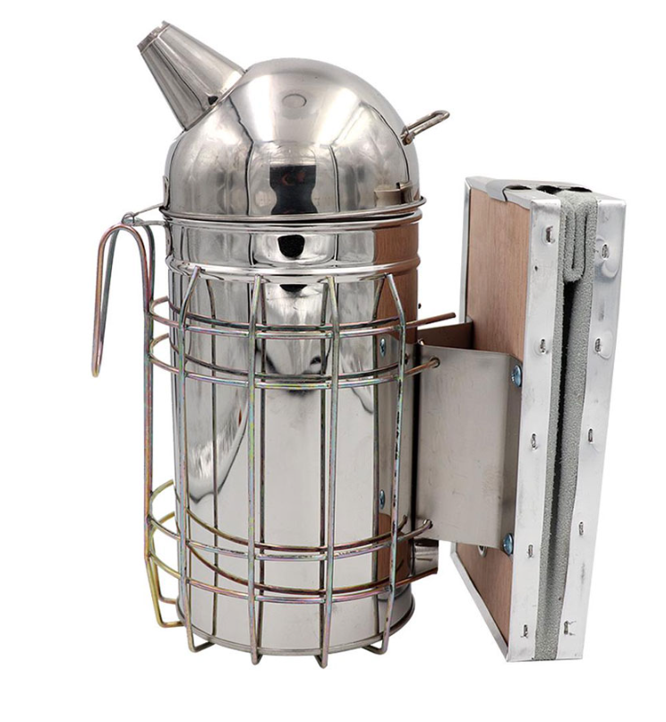 Пасечный европейский дымарь изготовлен из нержавеющей стали — материала, устойчивого к перепадам температуры и воздействию осадков, поэтому такой дымарь долговечен, хотя его стоимость несколько выше железного. На корпусе в форме цилиндра — меха из деревянных пластин и силиконовых вставок. Крышка полусферическая, носик конусообразный, к нему при необходимости можно прикрепить удлинительную насадку.