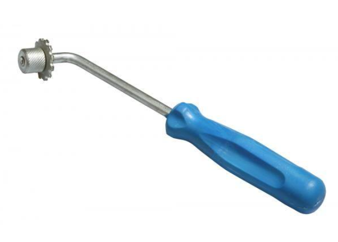 Каток со шпорой пластмассовая ручка. Размер (мм): 220×40×24 Вес (г): 80 Материалы и элементы, используемые при изготовлении товара: каток состоит из металлических деталей: стержня, рифленого валика и зубчатого диска с канавкой. А также плас...