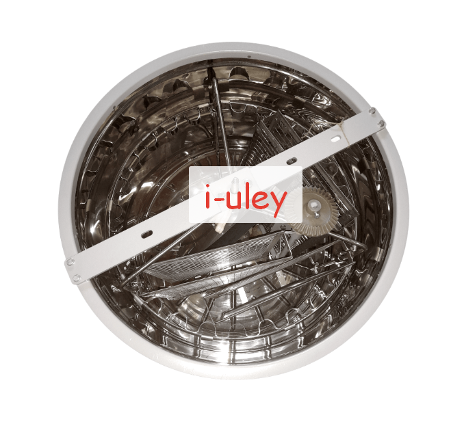 на 3 рамки размером 435х300 мм или 6 полурамок размером 435х145 мм или 27 полурамок размером 435х145 мм, устанавливающихся радиально. Оборачивающиеся кассеты исключают переустановку рамок во время откачки меда. При откачке 27 полурамок радиально кассеты удаляются, а полурамки вставляются в специальные гнезда. В изготовлении кассет используется качественная сварная нержавеющая сетка. Бак и ротор из высококачественной нержавеющей стали. Привод–конические шестерни, кран задвижка. Для крепления ротора используется шарикоподшипник. Диаметр бака 628мм, высота 765мм, карман вмещает не менее 50кг меда. Вес 29±0,5кг.
