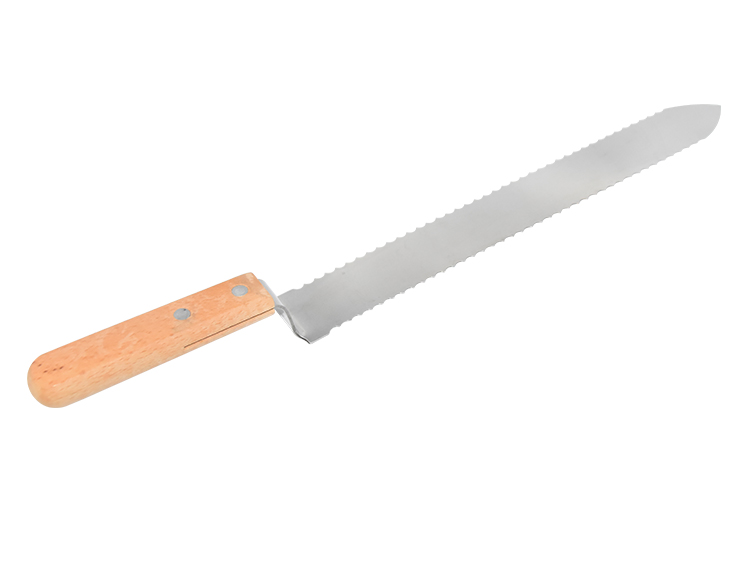 Нож пчеловодный "Европа" зубчатый 280 мм c односторонней заточкой и загнутым носиком, деревянная ручка.