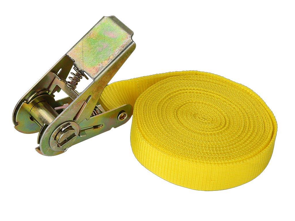 Материалы и элементы, используемые при изготовлении товара: Скреп состоит из ремня изготовленного из синтетической плотной ткани желтого цвета, мало подверженной растягиванию и протиранию, и замка-фиксатора с храповым механизмом, закрепленного на одном конце ремня.