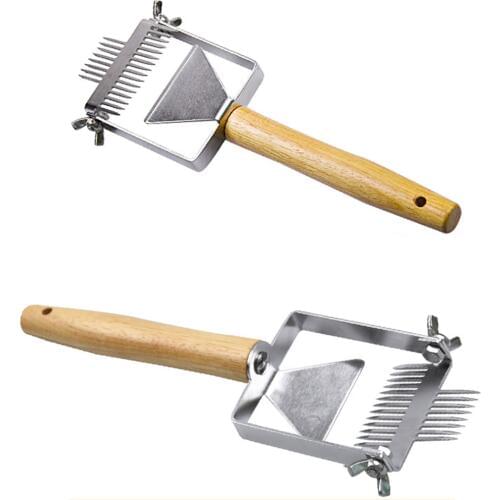 Вилка пчеловода для распечатывания сотовых рамок из нержавейки деревянной ручкой (16 + 8 игл).
